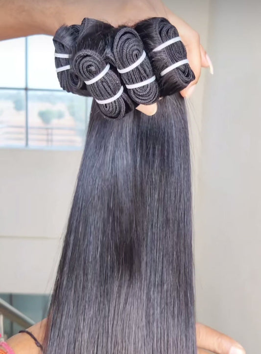 Experience the beauty of 100% Raw Indian Hair — ethically sourced, unprocessed, and naturally full of life. Each bundle is hand-selected for unmatched quality, longevity, and versatility. From sleek straight to lush curly textures, our hair blends effortlessly and lasts for years with proper care. Elevate your look with luxury that speaks for itself.